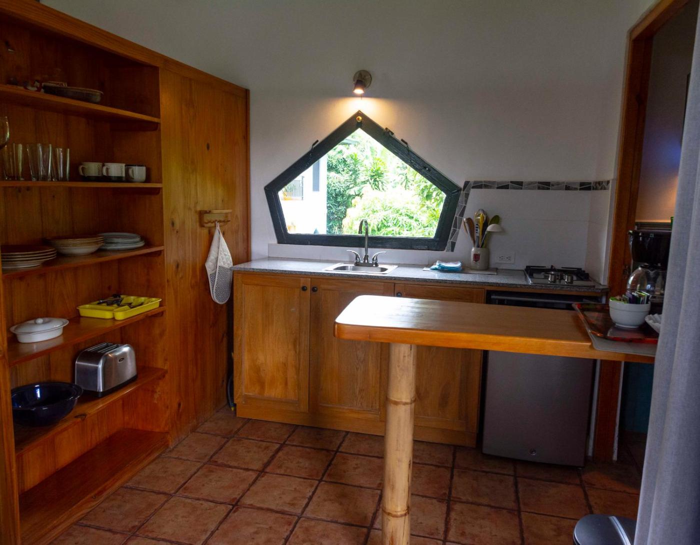 Basic Triple Room. The triple room includes a private bathroom fitted with a walk-in shower, a bath and a hairdryer. Guests can make meals in the kitchenette that features a stovetop, a refrigerator, kitchenware and a toaster. The triple room features a tea and coffee maker, a seating area, a dining area, a flat-screen TV with cable channels, as well as garden views. The unit has 3 beds. ;